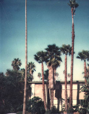 Trimming palm trees for a buck, this is about 8-9 stories up.